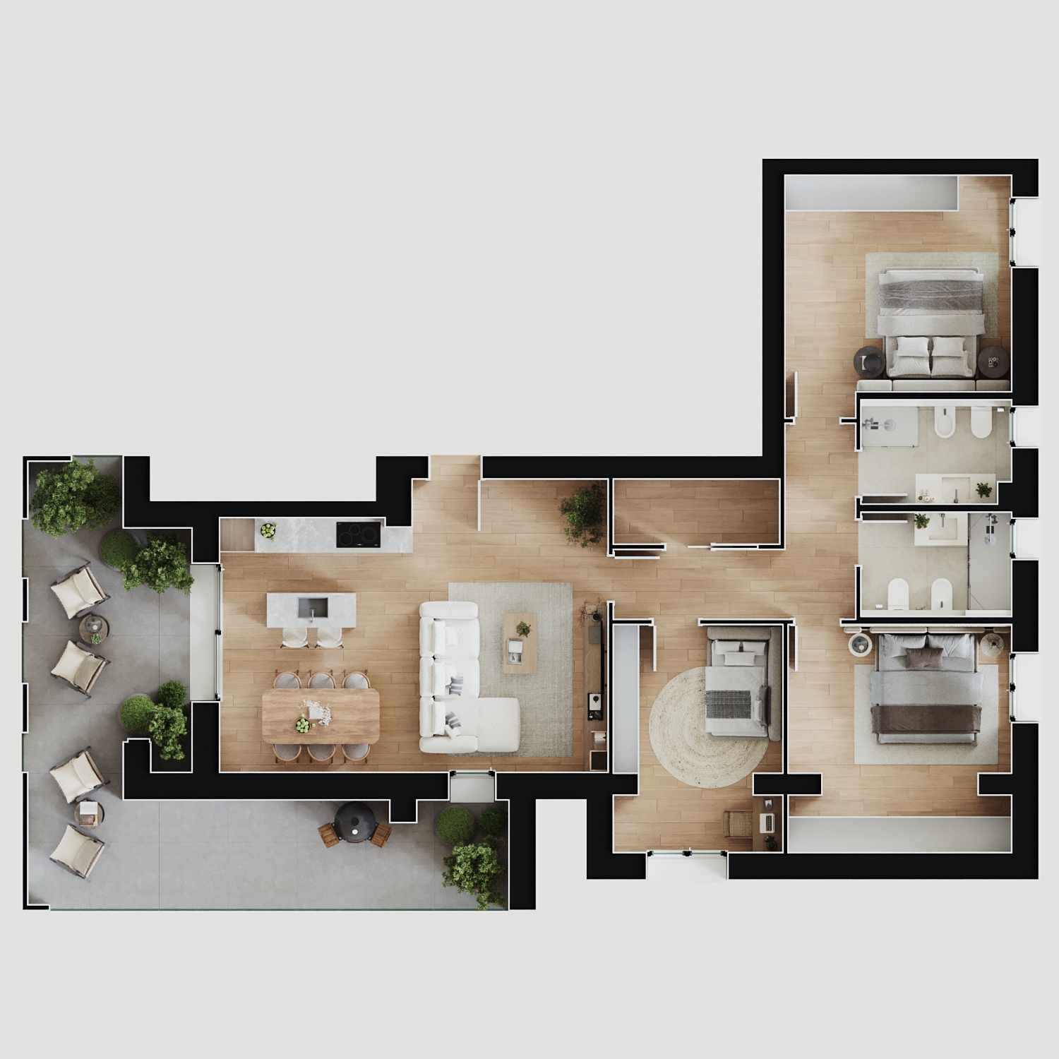 Gli appartamenti sono luminosi e accoglienti, tutti integrati con sistemi di domotica che rendono ogni abitazione intelligente e facilmente gestibile tramite App.