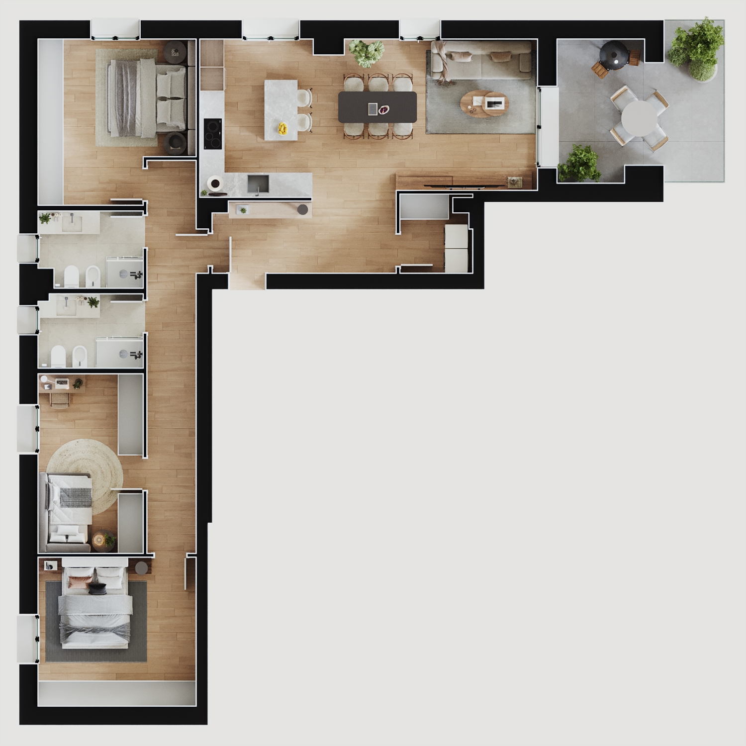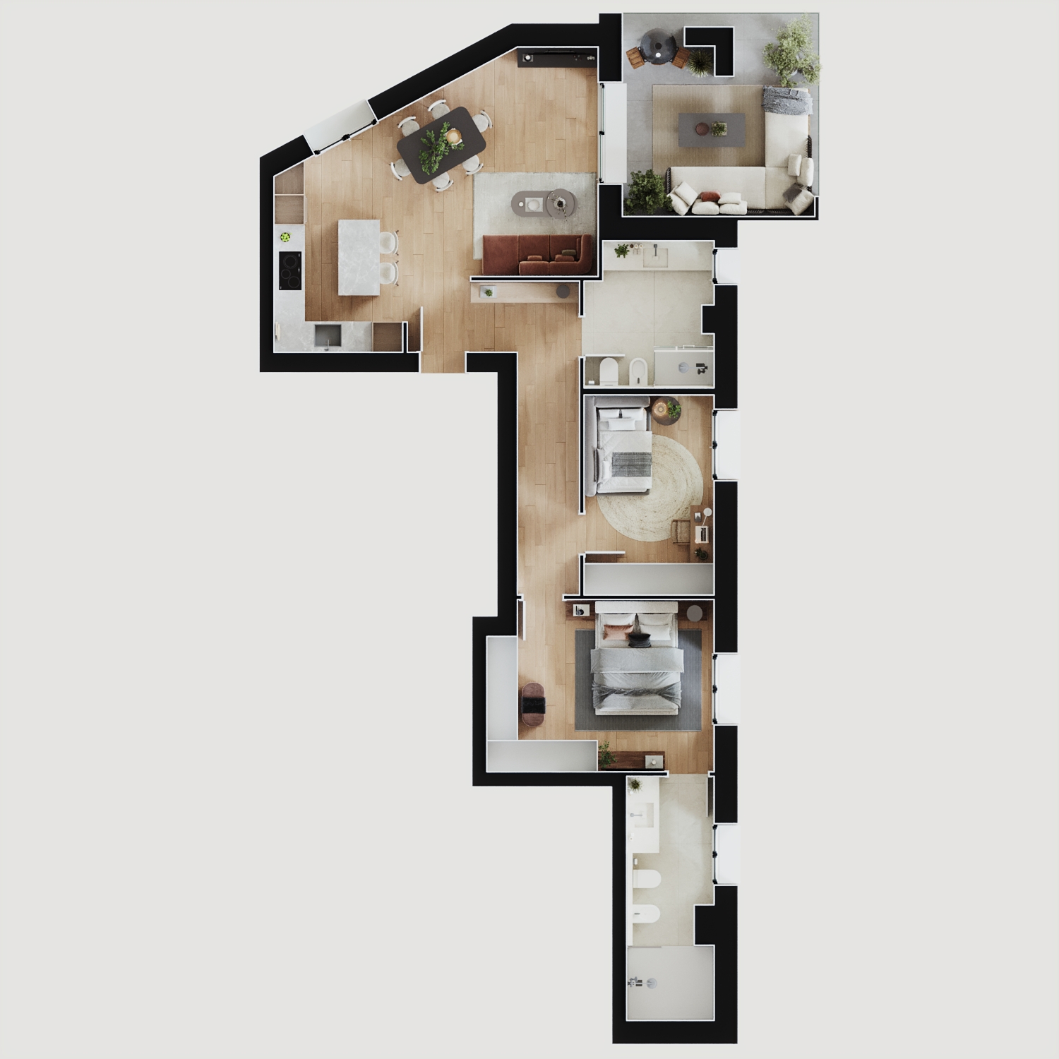 Al loro interno prende forma un’ampia gamma di soluzioni abitative, capaci di adattarsi alle esigenze di coppie, famiglie e professionisti, e di soddisfare differenti necessità di spazio, grazie a una distribuzione degli ambienti studiata per essere funzionale e flessibile.