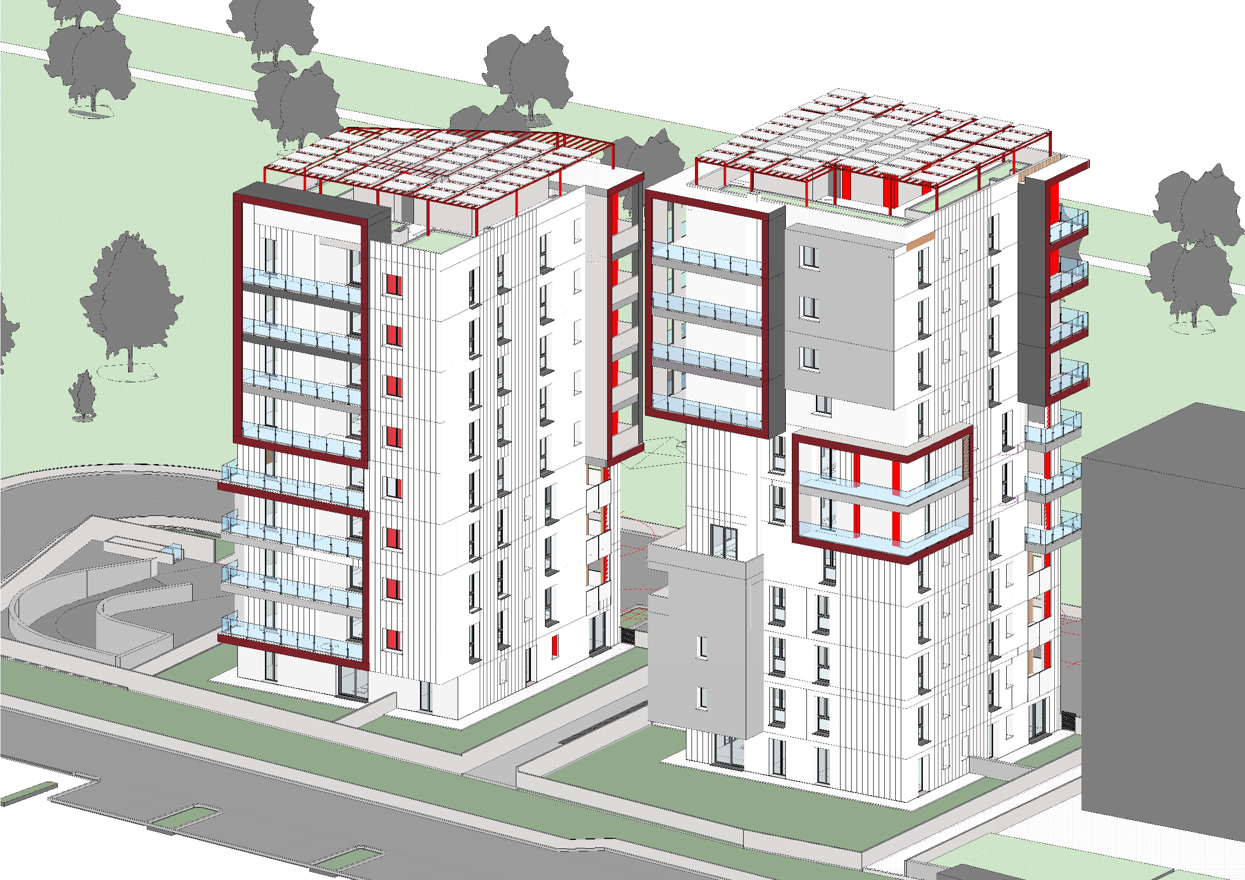 Gli edifici sono “gas free”, dotati di pompe di calore per la produzione di acqua calda, riscaldamento e raffrescamento, collegate alla rete elettrica con integrazione di pannelli fotovoltaici , per garantire efficienza energetica e risparmio. A completare l'offerta, nei due piani interrati serviti da ascensore , trovano posto le autorimesse e ampie cantine , comodità essenziali che aggiungono valore pratico alla vita quotidiana perché permettono di accedere ad auto e depositi senza dover uscire dall'edificio.