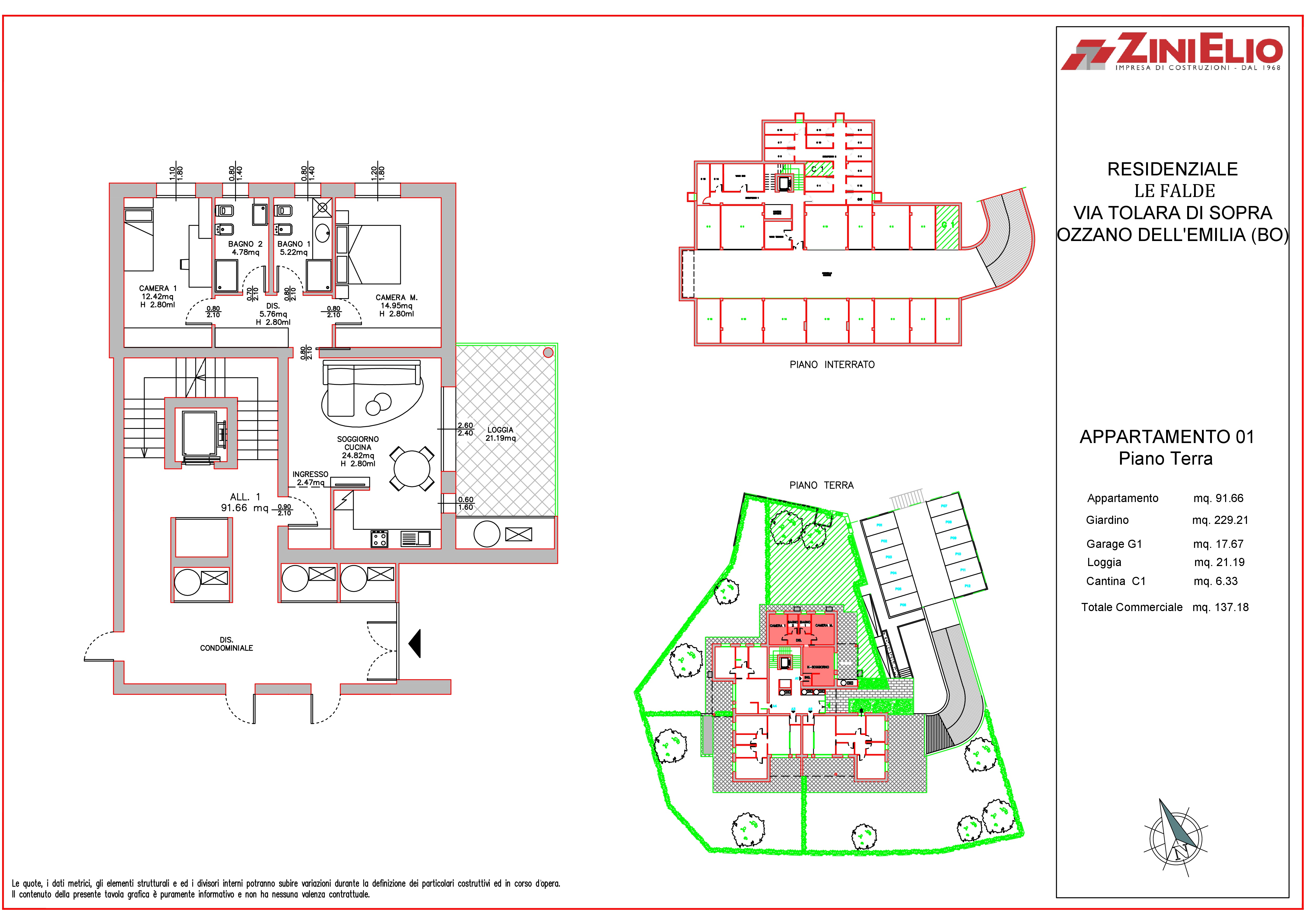 RESIDENZIALE "LE FALDE" VIA TOLARA DI SOPRA OZZANO DELL'EMILIA (BO) - APPARTAMENTO 01 PIANO TERRA CON GIARDINO PRIVATO