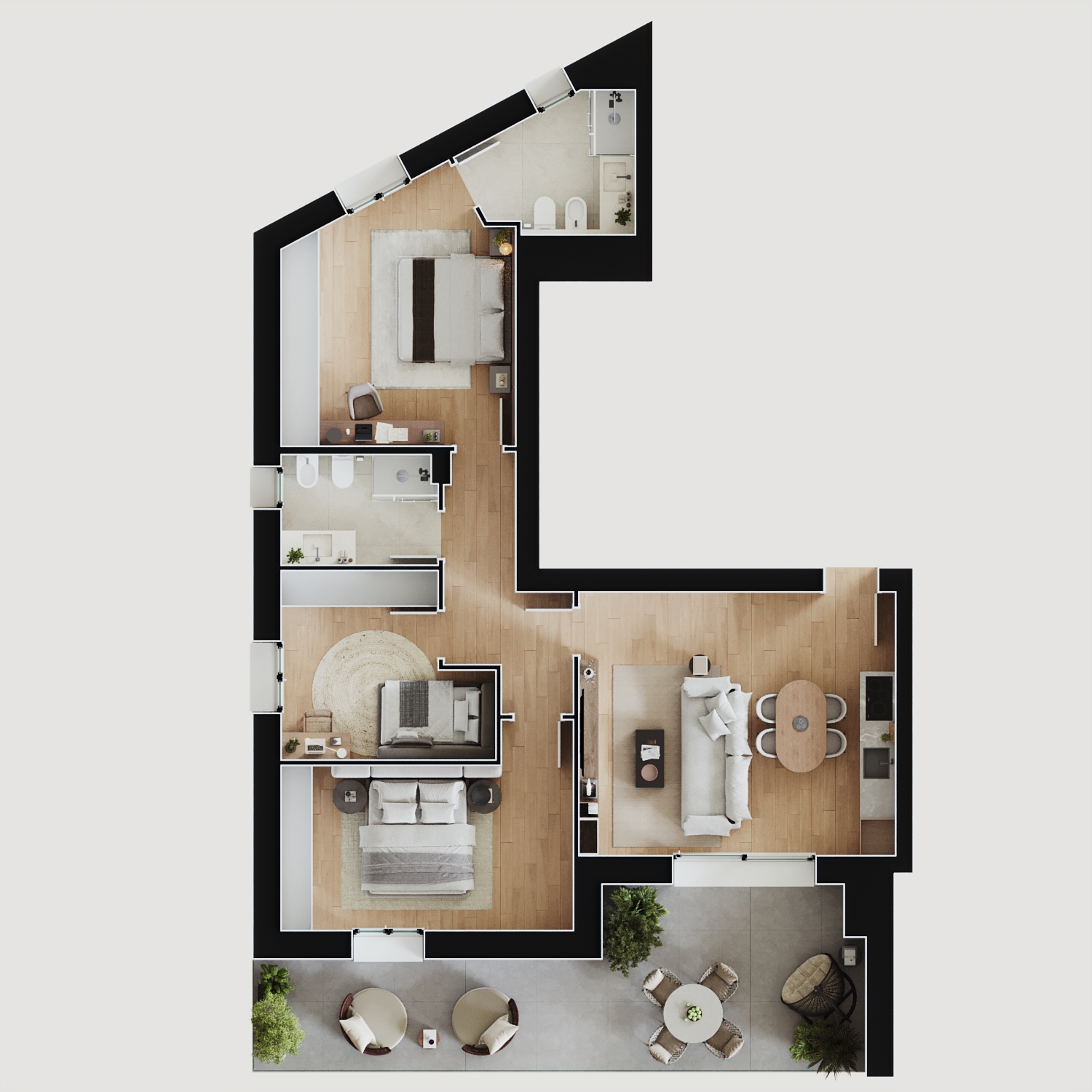 Al loro interno prende forma un’ampia gamma di soluzioni abitative, capaci di adattarsi alle esigenze di coppie, famiglie e professionisti, e di soddisfare differenti necessità di spazio, grazie a una distribuzione degli ambienti studiata per essere funzionale e flessibile.